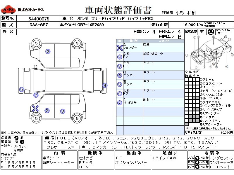 | メーカー・車種 | ホンダ フリードハイブリッド ハイブリッドEX (型式:DAA-GB7) | ||||||||||||||||||||||||||||||||||||||||
