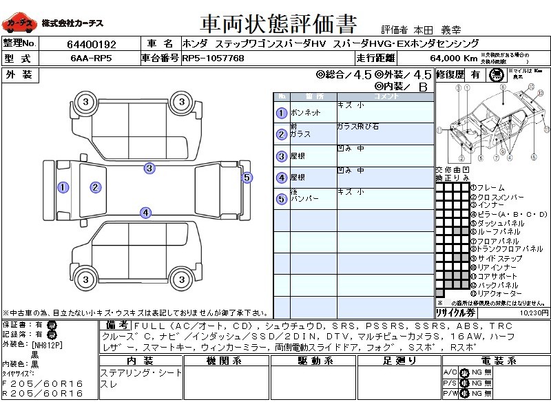 | メーカー・車種 | ホンダ ステップワゴンスパーダHV スパーダHVG・EXホンダセンシング (型式:6AA-RP5) | ||||||||||||||||||||||||||||||||||||||||