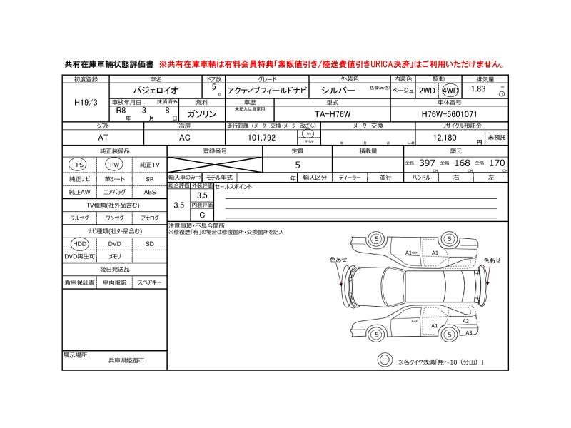 | メーカー・車種 | 三菱 パジェロイオ5D アクティブフィールドEd (型式:TA-H76W) | ||||||||||||||||||||||||||||||||||||||||