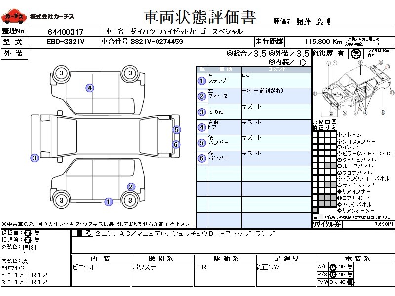 | メーカー・車種 | ダイハツ ハイゼットカーゴ スペシャル (型式:EBD-S321V) | ||||||||||||||||||||||||||||||||||||||||
