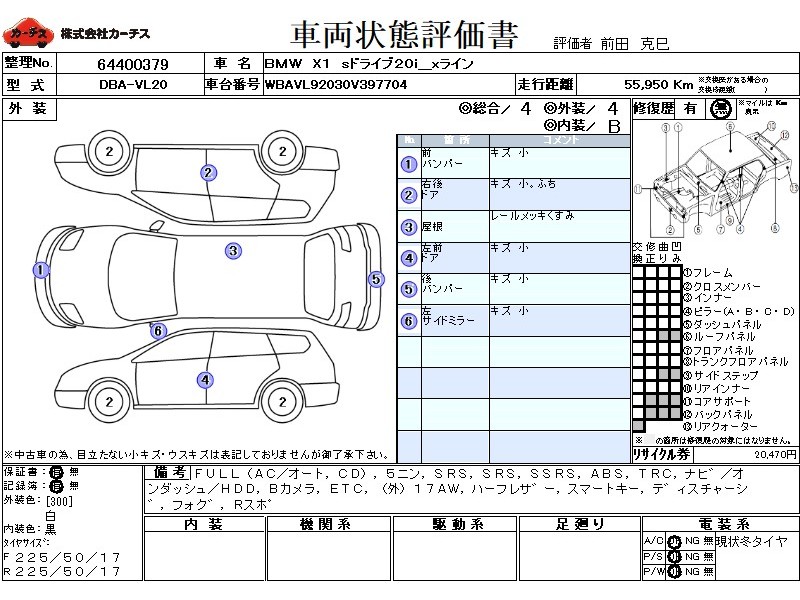 | メーカー・車種 | BMW X1 sドライブ20i_xライン (型式:DBA-VL20) | ||||||||||||||||||||||||||||||||||||||||