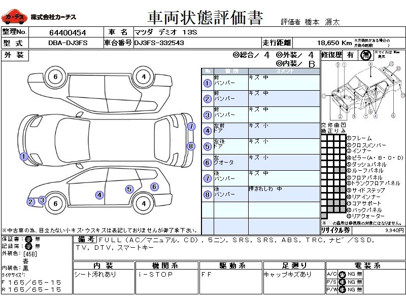 | メーカー・車種 | マツダ デミオ 13S (型式:DBA-DJ3FS) | ||||||||||||||||||||||||||||||||||||||||