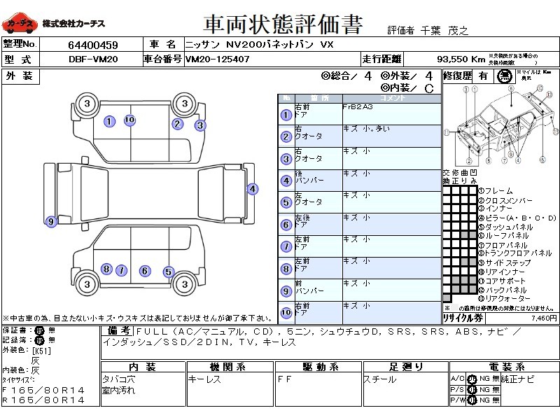 | メーカー・車種 | 日産 NV200バネットバン VX (型式:DBF-VM20) | ||||||||||||||||||||||||||||||||||||||||
