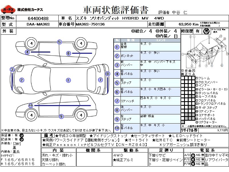 | メーカー・車種 | スズキ ソリオバンディット バンディットHVMV (型式:DAA-MA36S) | ||||||||||||||||||||||||||||||||||||||||