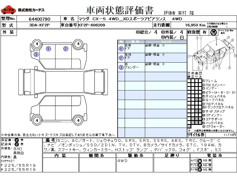 | メーカー・車種 | マツダ CX-5 4WD_XDスポーツアピアランス (型式:3DA-KF2P) | ||||||||||||||||||||||||||||||||||||||||
