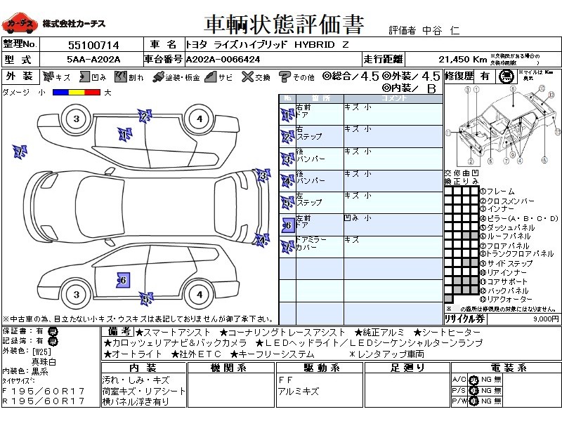 | メーカー・車種 | トヨタ ライズハイブリッド ハイブリッドZ (型式:5AA-A202A) | ||||||||||||||||||||||||||||||||||||||||