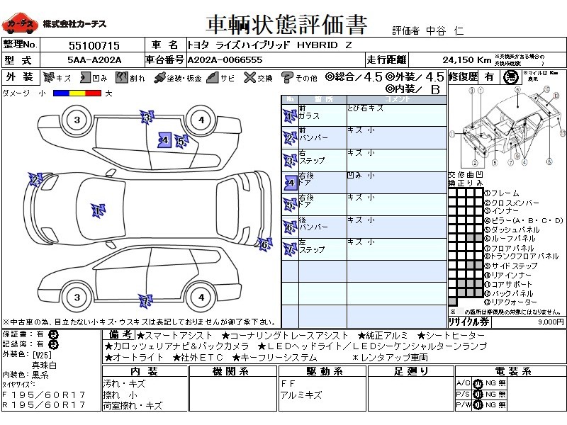 | メーカー・車種 | トヨタ ライズハイブリッド ハイブリッドZ (型式:5AA-A202A) | ||||||||||||||||||||||||||||||||||||||||