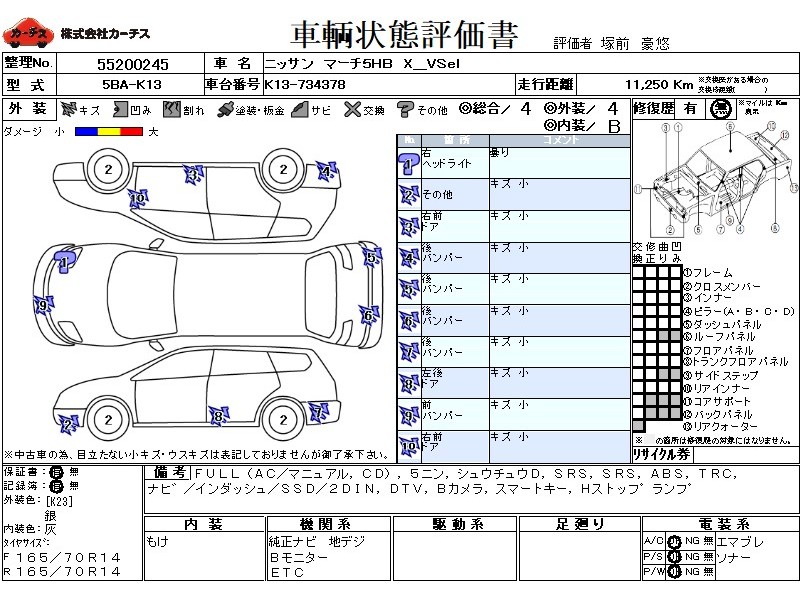 | メーカー・車種 | 日産 マーチ5HB X_VSel (型式:5BA-K13) | ||||||||||||||||||||||||||||||||||||||||