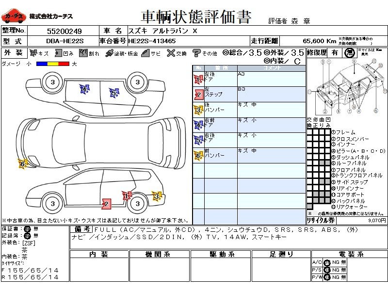 | メーカー・車種 | スズキ アルトラパン X (型式:DBA-HE22S) | ||||||||||||||||||||||||||||||||||||||||