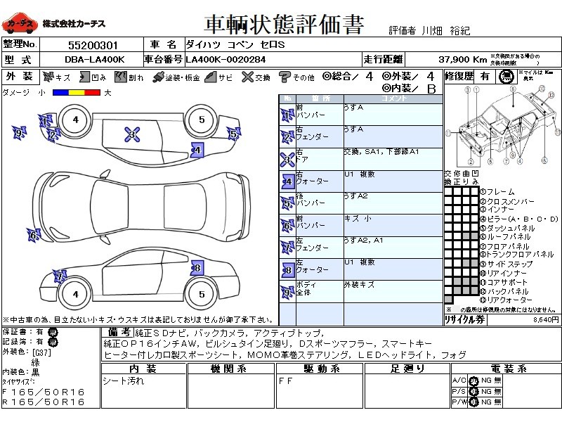 | メーカー・車種 | ダイハツ コペン セロS (型式:DBA-LA400K) | ||||||||||||||||||||||||||||||||||||||||