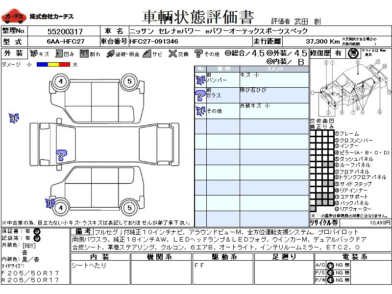 | メーカー・車種 | 日産 セレナeパワー eパワーオーテックスポーツスペック (型式:6AA-HFC27) | ||||||||||||||||||||||||||||||||||||||||