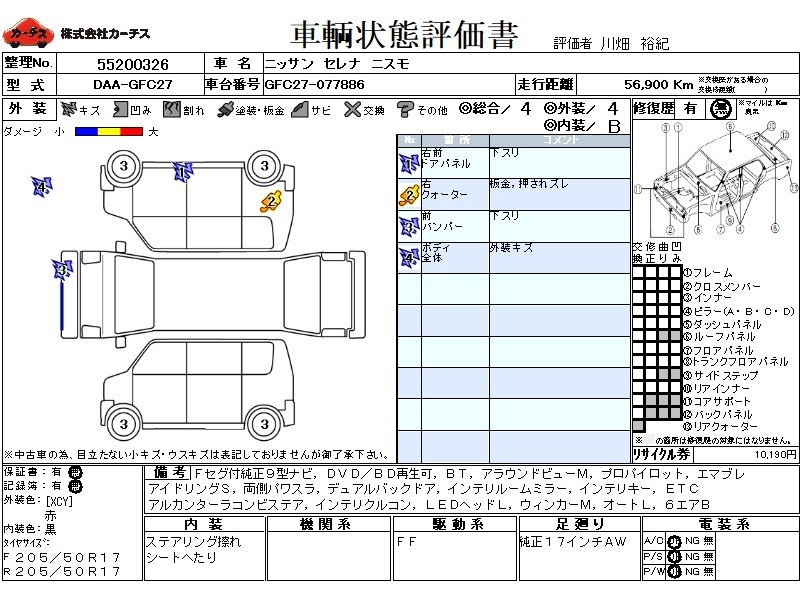 | メーカー・車種 | 日産 セレナ ニスモ (型式:DAA-GFC27) | ||||||||||||||||||||||||||||||||||||||||
