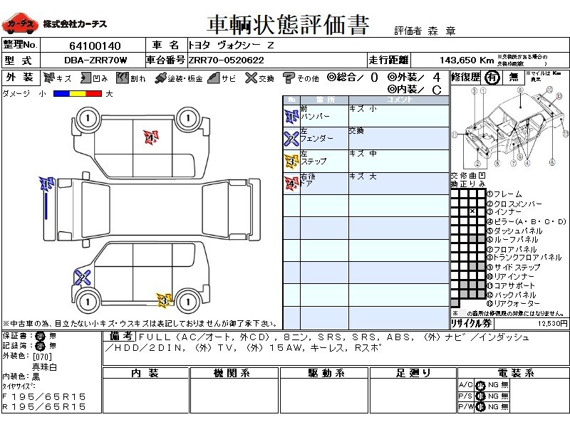 | メーカー・車種 | トヨタ ヴォクシー Z (型式:DBA-ZRR70W) | ||||||||||||||||||||||||||||||||||||||||
