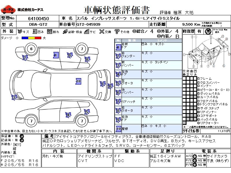 | セールスポイント | アイサイトコアテクノロジー&セイフティプラス 全車速追従機能付クルーズコントロール RAB SRVD 純正OPカロッツェリアメモリーナビ フルセグTV BTオーディオ DVD再生 バックカメラ キーレスアクセス LEDヘッドライト パドルシフト 純正16インチアルミ コーナーセンサー 6エアバッグ アイドリングストップ 禁煙車 | ||||||||||||||||||||||||||||||||||||||||