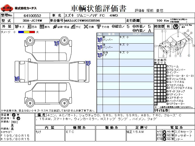 | メーカー・車種 | スズキ ジムニーノマド FC (型式:3BA-JC74W) | ||||||||||||||||||||||||||||||||||||||||