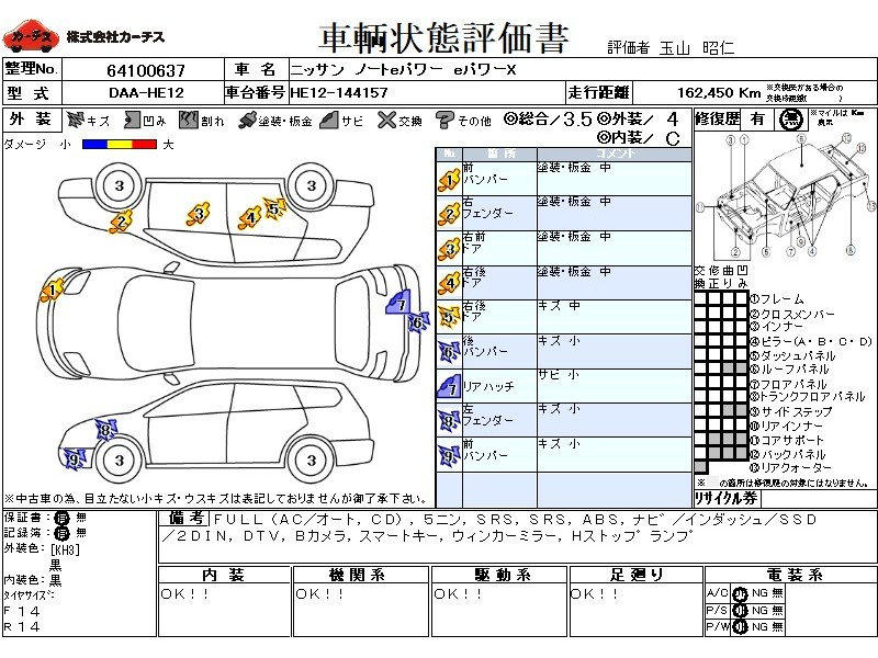 | メーカー・車種 | 日産 ノートeパワー eパワーX (型式:DAA-HE12) | ||||||||||||||||||||||||||||||||||||||||