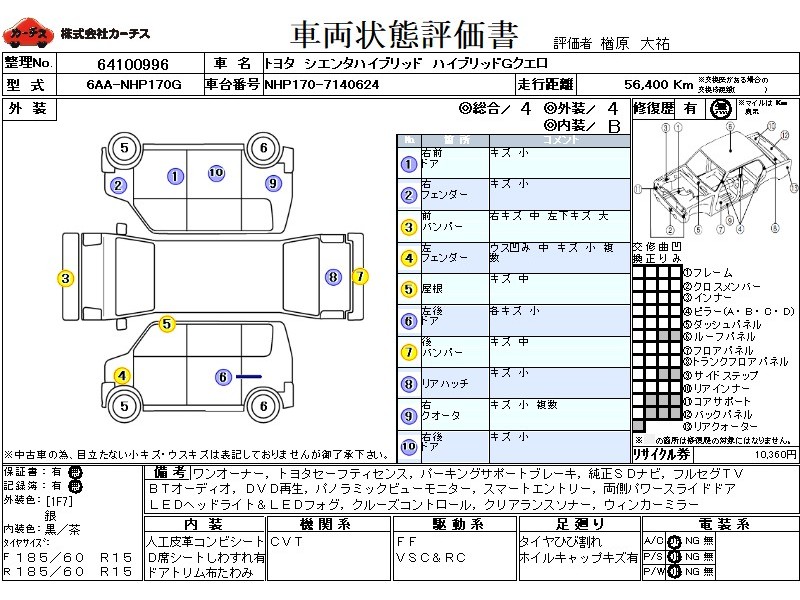 | メーカー・車種 | トヨタ シエンタハイブリッド ハイブリッドGクエロ (型式:6AA-NHP170G) | ||||||||||||||||||||||||||||||||||||||||