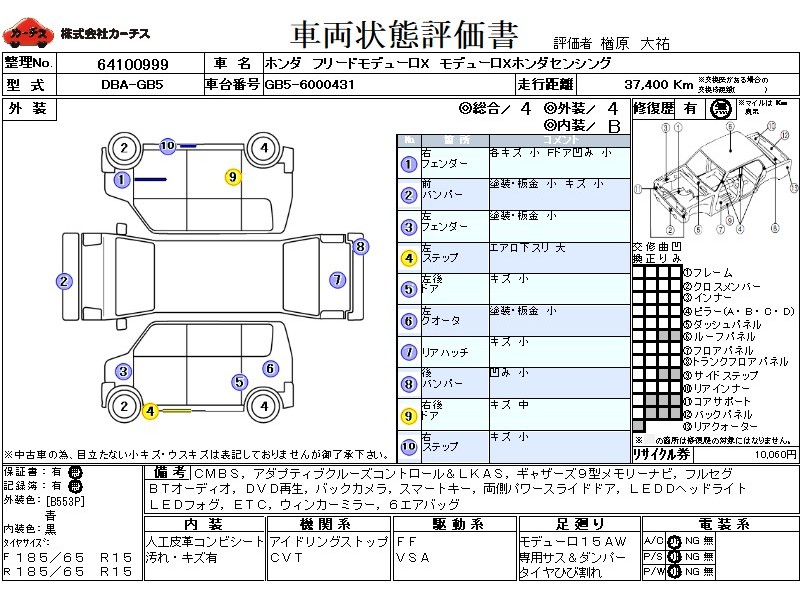 | メーカー・車種 | ホンダ フリードモデューロX モデューロXホンダセンシング (型式:DBA-GB5) | ||||||||||||||||||||||||||||||||||||||||