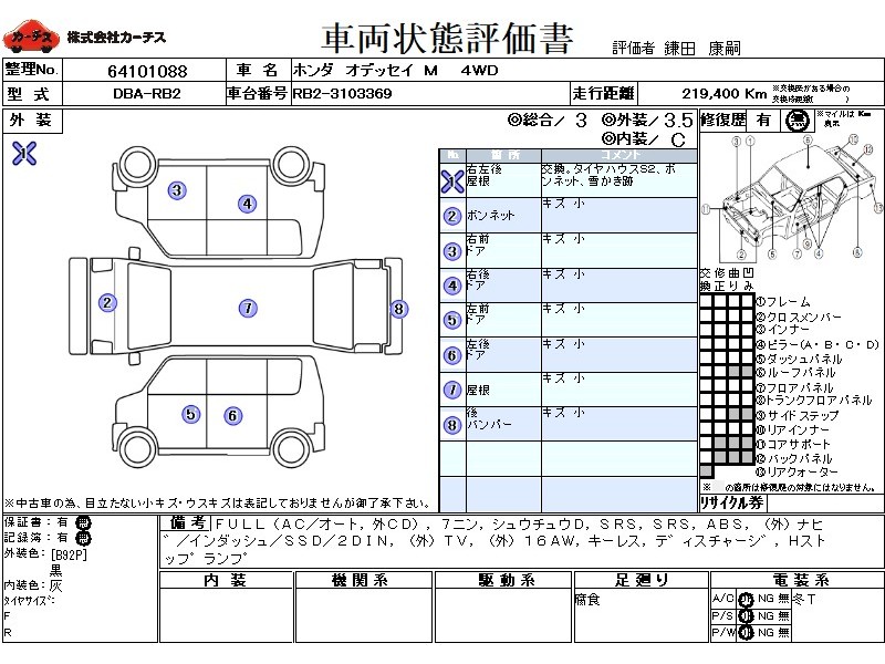 | メーカー・車種 | ホンダ オデッセイ M (型式:DBA-RB2) | ||||||||||||||||||||||||||||||||||||||||