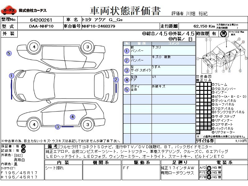 | メーカー・車種 | トヨタ アクア G_Gs (型式:DAA-NHP10) | ||||||||||||||||||||||||||||||||||||||||