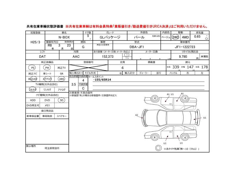 | メーカー・車種 | ホンダ N BOX G・LPk (型式:DBA-JF1) | ||||||||||||||||||||||||||||||||||||||||
