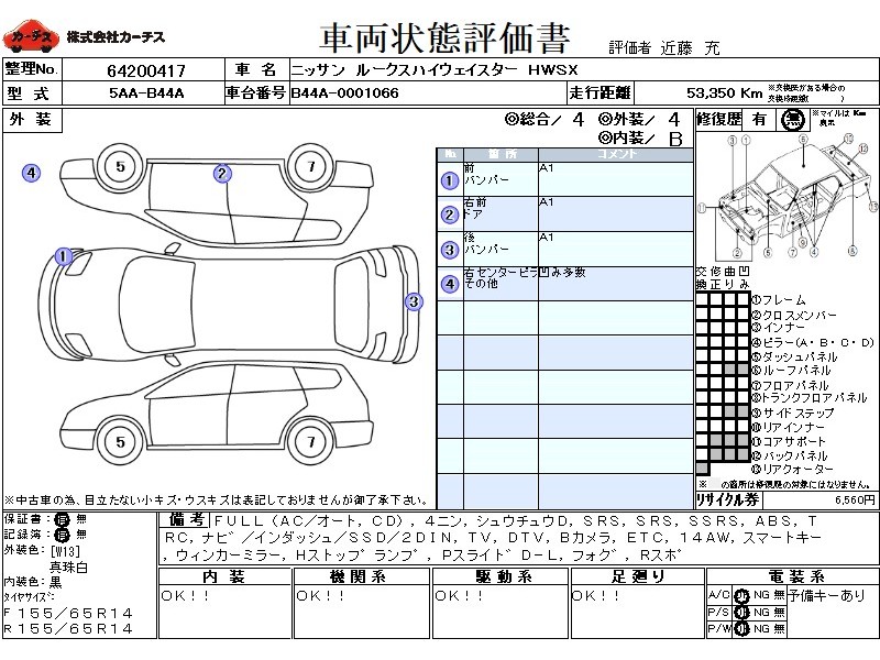 | メーカー・車種 | 日産 ルークスハイウェイスター HWSX (型式:5AA-B44A) | ||||||||||||||||||||||||||||||||||||||||