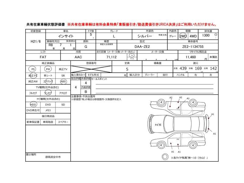| メーカー・車種 | ホンダ インサイト L (型式:DAA-ZE2) | ||||||||||||||||||||||||||||||||||||||||