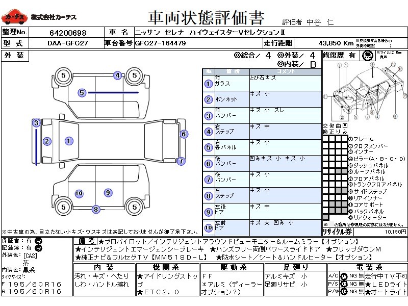 | メーカー・車種 | 日産 セレナ ハイウェイスターVSel2 (型式:DAA-GFC27) | ||||||||||||||||||||||||||||||||||||||||