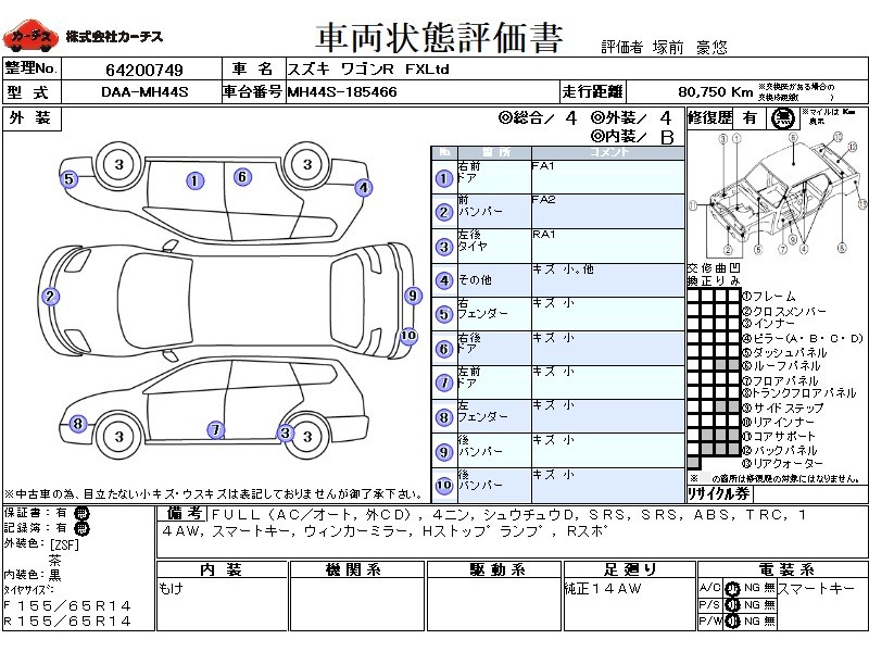 | メーカー・車種 | スズキ ワゴンR FXLtd (型式:DAA-MH44S) | ||||||||||||||||||||||||||||||||||||||||