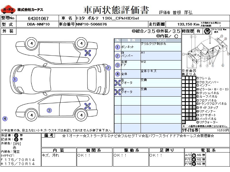 | メーカー・車種 | トヨタ ポルテ 130i_CPkHIDSel (型式:DBA-NNP10) | ||||||||||||||||||||||||||||||||||||||||