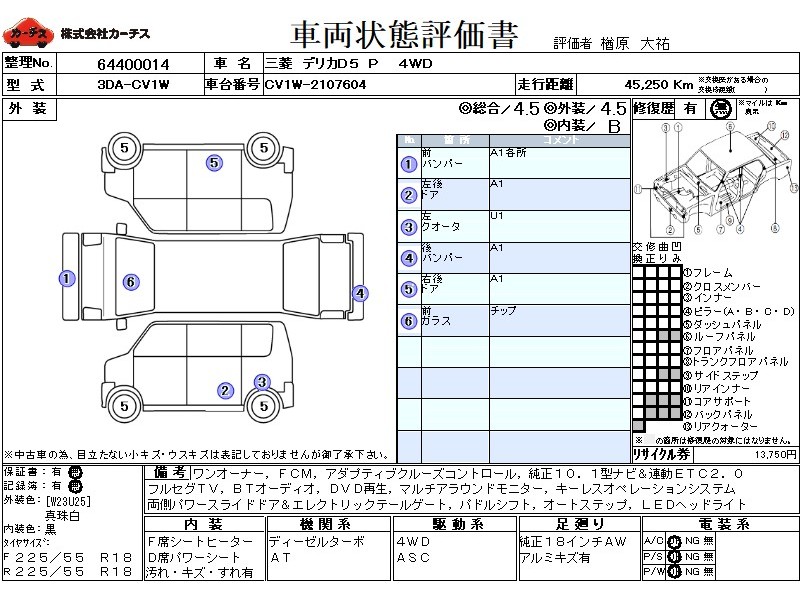 | メーカー・車種 | 三菱 デリカD5 P (型式:3DA-CV1W) | ||||||||||||||||||||||||||||||||||||||||