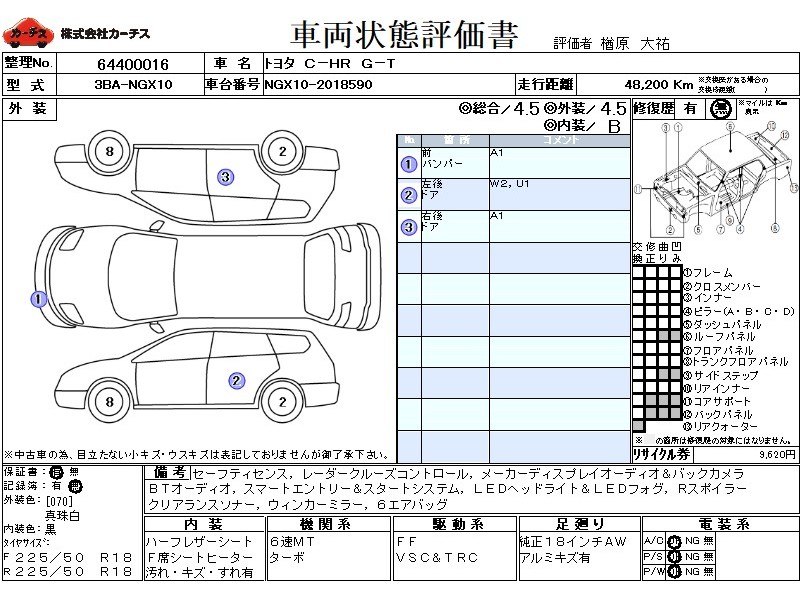 | メーカー・車種 | トヨタ C-HR G-T (型式:3BA-NGX10) | ||||||||||||||||||||||||||||||||||||||||