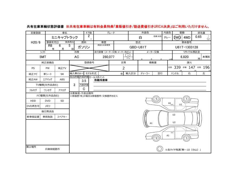 | メーカー・車種 | 三菱 ミニキャブトラック G (型式:GBD-U61T) | ||||||||||||||||||||||||||||||||||||||||