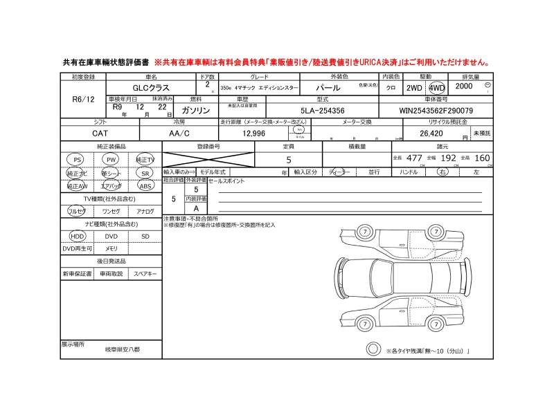 | メーカー・車種 | メルセデスベンツ GLCクラス GLC350e_4MスポーツEdスター (型式:5LA-254356) | ||||||||||||||||||||||||||||||||||||||||