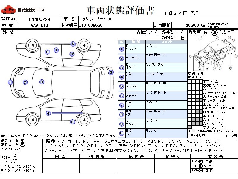 | メーカー・車種 | 日産 ノート X (型式:6AA-E13) | ||||||||||||||||||||||||||||||||||||||||