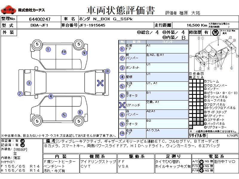| メーカー・車種 | ホンダ N BOX G_SSPk (型式:DBA-JF1) | ||||||||||||||||||||||||||||||||||||||||