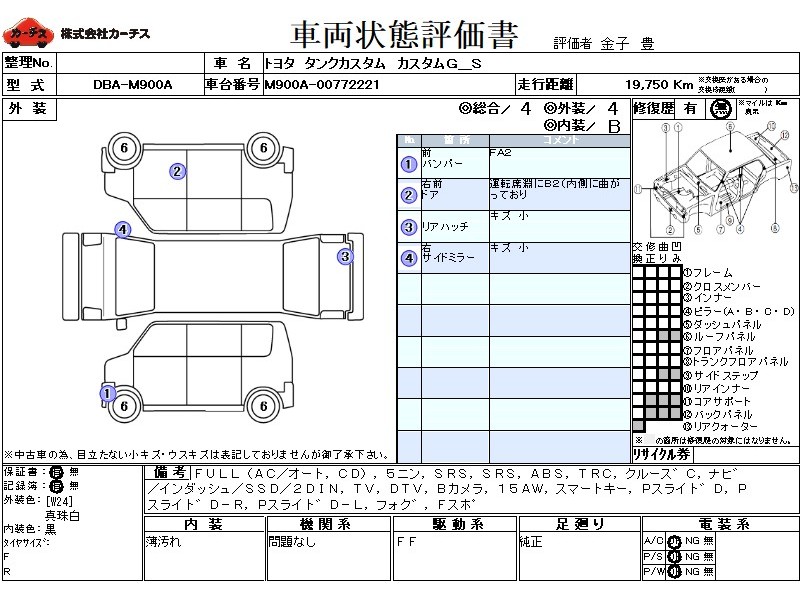 | メーカー・車種 | トヨタ タンクカスタム カスタムG_S (型式:DBA-M900A) | ||||||||||||||||||||||||||||||||||||||||