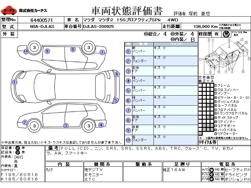 | メーカー・車種 | マツダ マツダ2 15SプロアクティブSPk (型式:6BA-DJLAS) | ||||||||||||||||||||||||||||||||||||||||