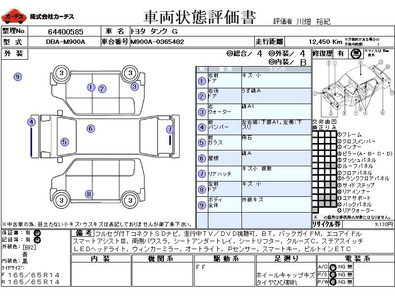 | メーカー・車種 | トヨタ タンク G (型式:DBA-M900A) | ||||||||||||||||||||||||||||||||||||||||