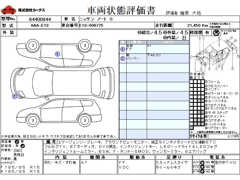 | メーカー・車種 | 日産 ノート S (型式:6AA-E13) | ||||||||||||||||||||||||||||||||||||||||